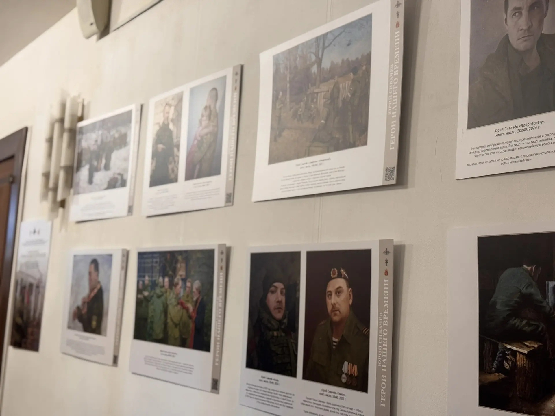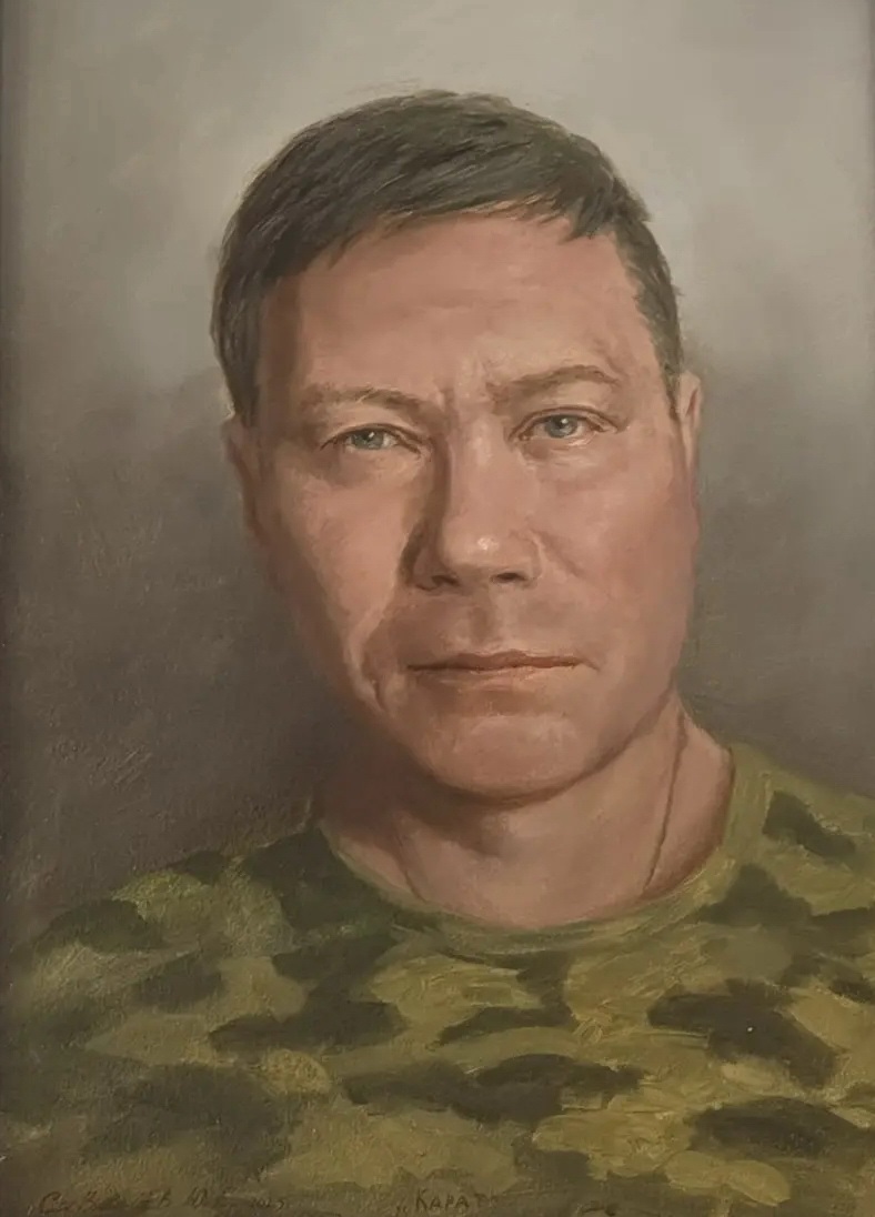 Одна из оригинальных работ вызвала особый отклик у посетителей: портрет военнослужащего Георгия Пяка, который был мобилизован в 2022 году и погиб в августе 2024‑го. По просьбе вдовы Елены Юрий Сивачёв написал портрет ее мужа по фотографии. Эта работа останется на выставке до её завершения.